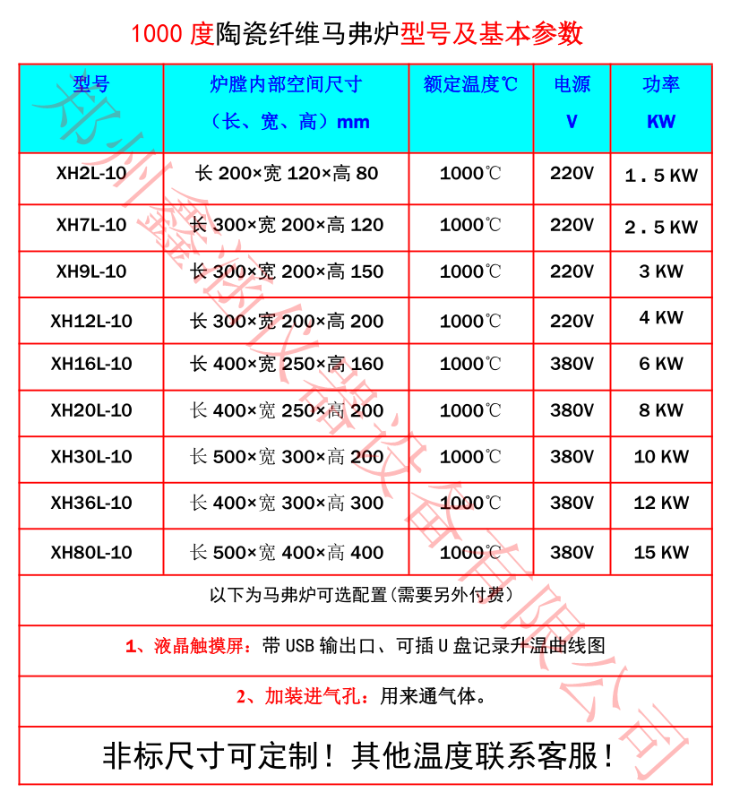 2、配置:鑫涵儀器1000度陶瓷纖維馬弗爐XH1L-10,加熱絲采用含鉬合金電阻絲材料。陶瓷纖維馬弗爐加熱溫度均勻、升溫速度快。陶瓷纖維馬弗爐是普通馬弗爐能耗的40%左右,不掉粉塵、不掉渣不會影響做試驗的效果。